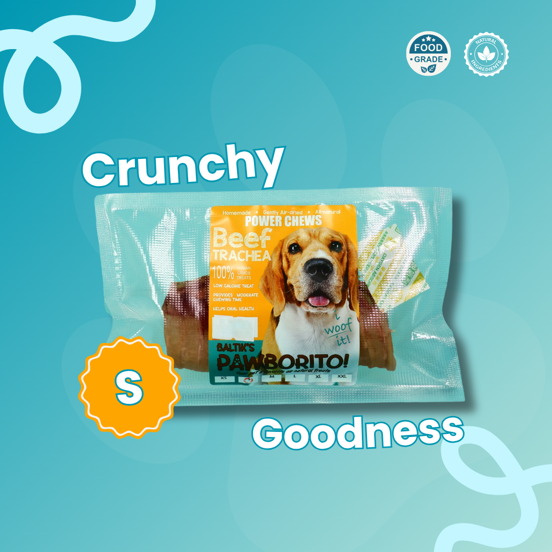 Baltik’s Pawborito Beef Trachea is a crunchy, all-natural chew treat made from 100% premium beef trachea. Packed with natural glucosamine and chondroitin, it helps support joint health and mobility—perfect for dogs of all sizes, especially active pups and senior dogs. Its hollow, tubular shape also makes it ideal for stuffing with your dog’s favorite fillings for added enrichment.